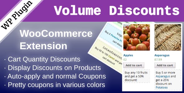 WooCommerce Volume Discount Coupons is an extension for WooCommerce, providing automatic discounts and coupons based on the quantities of products in the cart.